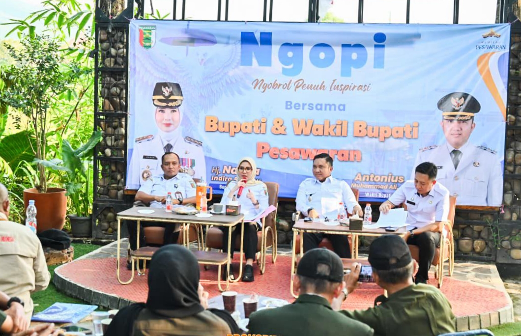 PESAWARAN — Pemerintah Kabupaten Pesawaran melalui Dinas Kominfotiksan menggelar kegiatan Ngobrol Penuh Inspirasi (Ngopi) bersama Bupati dan Wakil Bupati di Caffe Backland, Desa Bagelen, Kecamatan Gedong Tataan, Rabu (8/10/2025).
