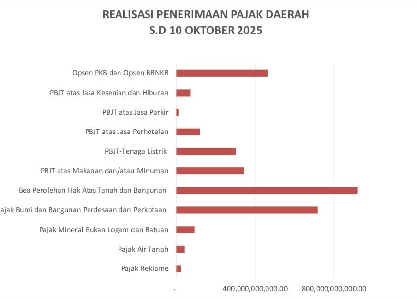 Total Realisasi Pajak Daerah s.d. 10 Oktober 2025 : Rp3.115.130.154.823,00